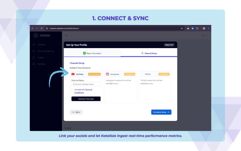 Link your socials and let Katalisia ingest real-time performance metrics.